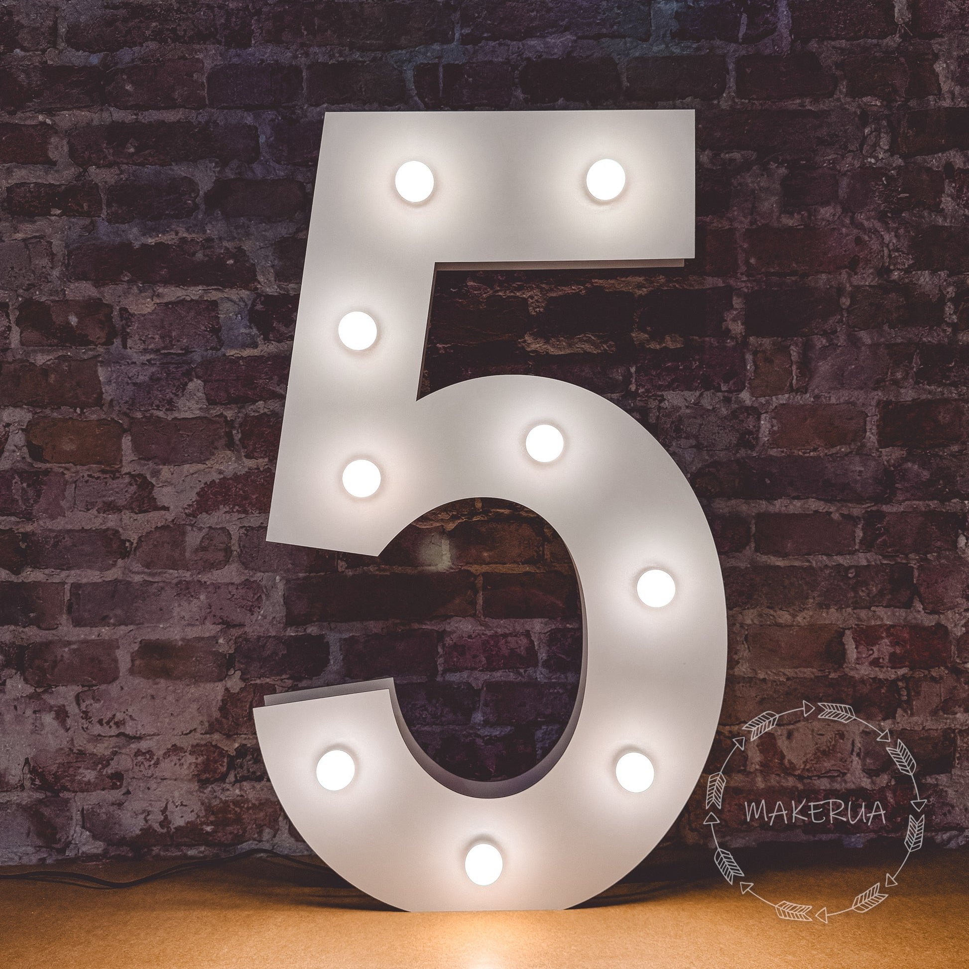 Number 5 Five birthday 1m (3.3ft) + LED Light Bulbs marquee numbers neon sign backdrop white decoration large giant big party props decor NHW5